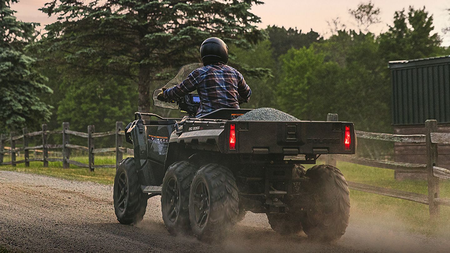 Le Polaris 6x6 n’est pas qu’un VTT avec deux roues de plus. Toute la partie arrière est pensée comme un outil de travail.